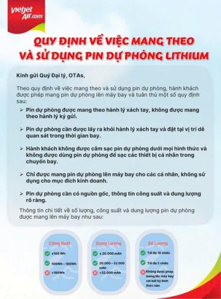 VIETJET QUY ĐỊNH VỀ VIỆC MANG THEO VÀ SỬ DỤNG PIN DỰ PHÒNG LITHIUM 12/11/2025 / 4 views VIETJET QUY ĐỊNH VỀ VIỆC MANG THEO VÀ SỬ DỤNG PIN DỰ PHÒNG LITHIUM #Vietjet #AGVJ #Baylathichngay